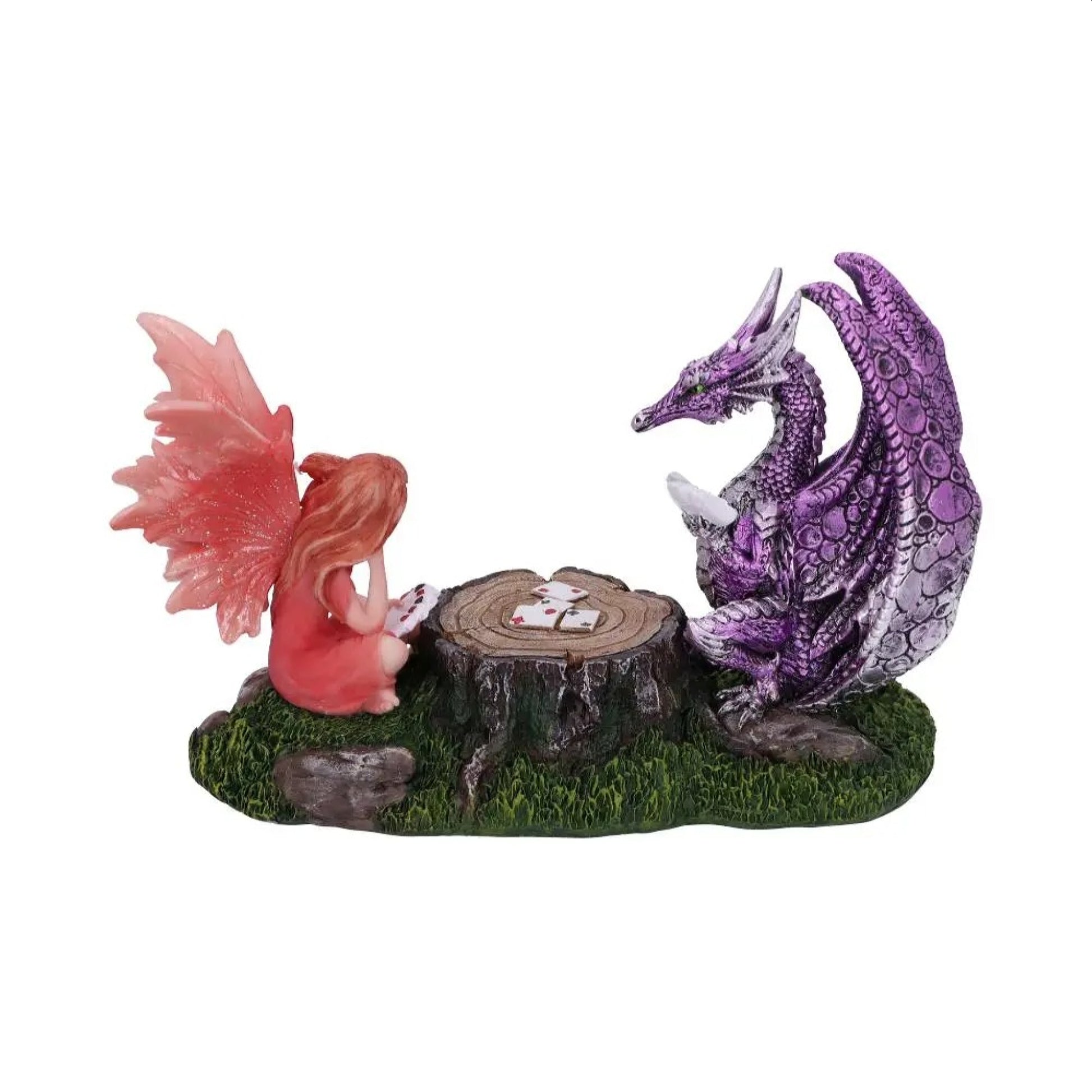 This Dragon sits on his hind legs, staring intently at his fairy opponent. Her coral wings glow under the natural light as she decides what to do with her hand. Cast in the finest resin before being hand-painted, these pair make the perfect present for your favourite poker buddy!