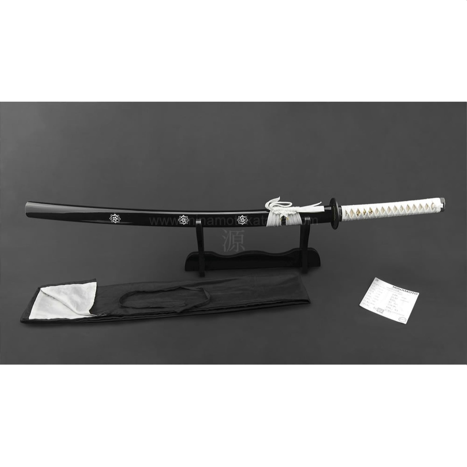 This handmade katana is made of 1060 high carbon folded steel. Each blade is lovingly forged in fire and beaten until the impurities are removed from the steel, leaving only the finest blade. It is heat tempered in the traditional manner and quenched in oil and water. The wooden handle is wrapped in genuine Stingray skin (Samekawa) before the traditional cotton handle wrapping (Tsukamaki).