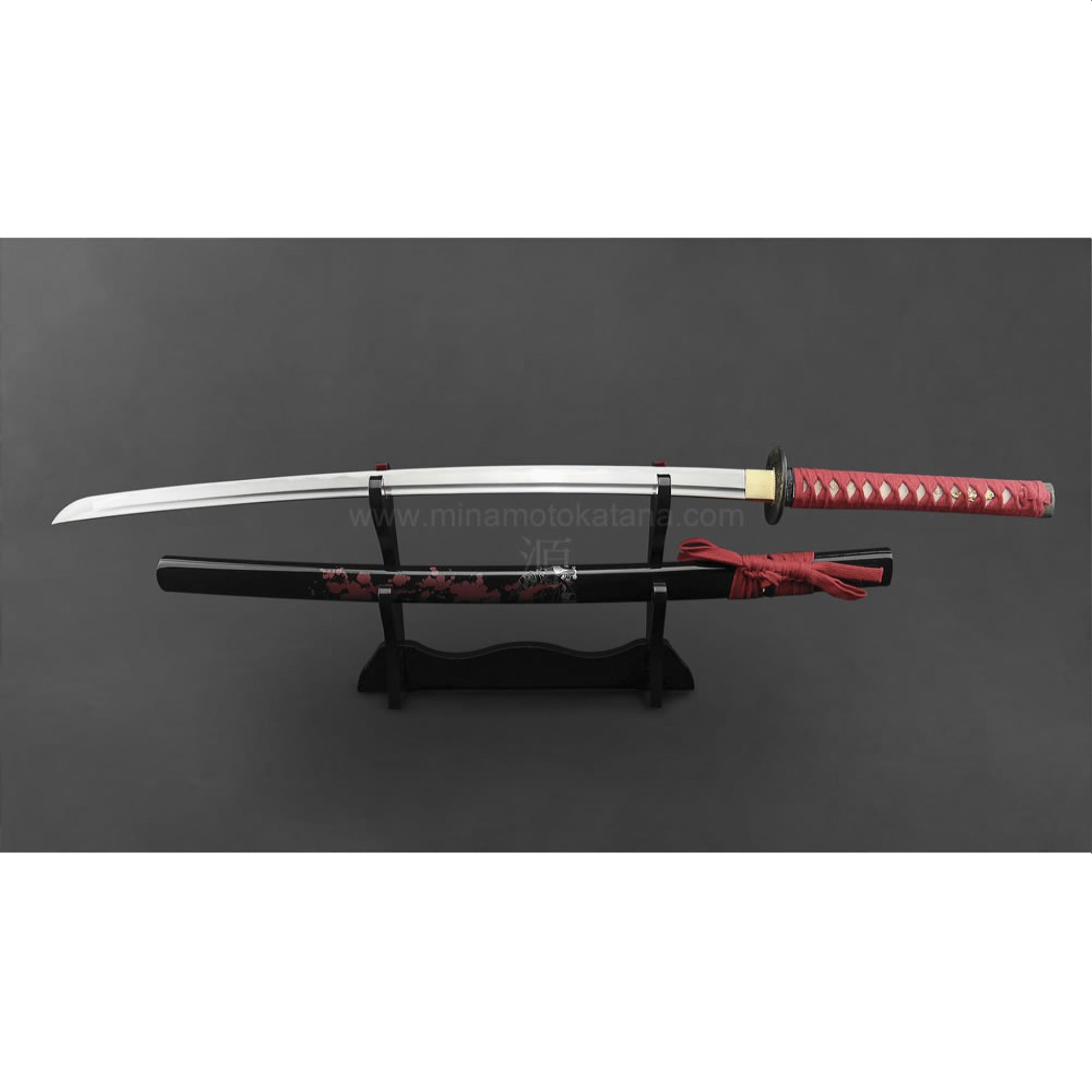 This handmade, traditionally hand forged katana, is made of folded steel. The folding process removes impurities from the steel, leaving only the finest quality steel. It is hammered and heated and hammered and heated until the perfect blade is formed. It is quenched for the perfect hardness. The wooden handle is wrapped in genuine Stingray skin (Samekawa) before the traditional cotton handle wrapping (Tsukamaki).