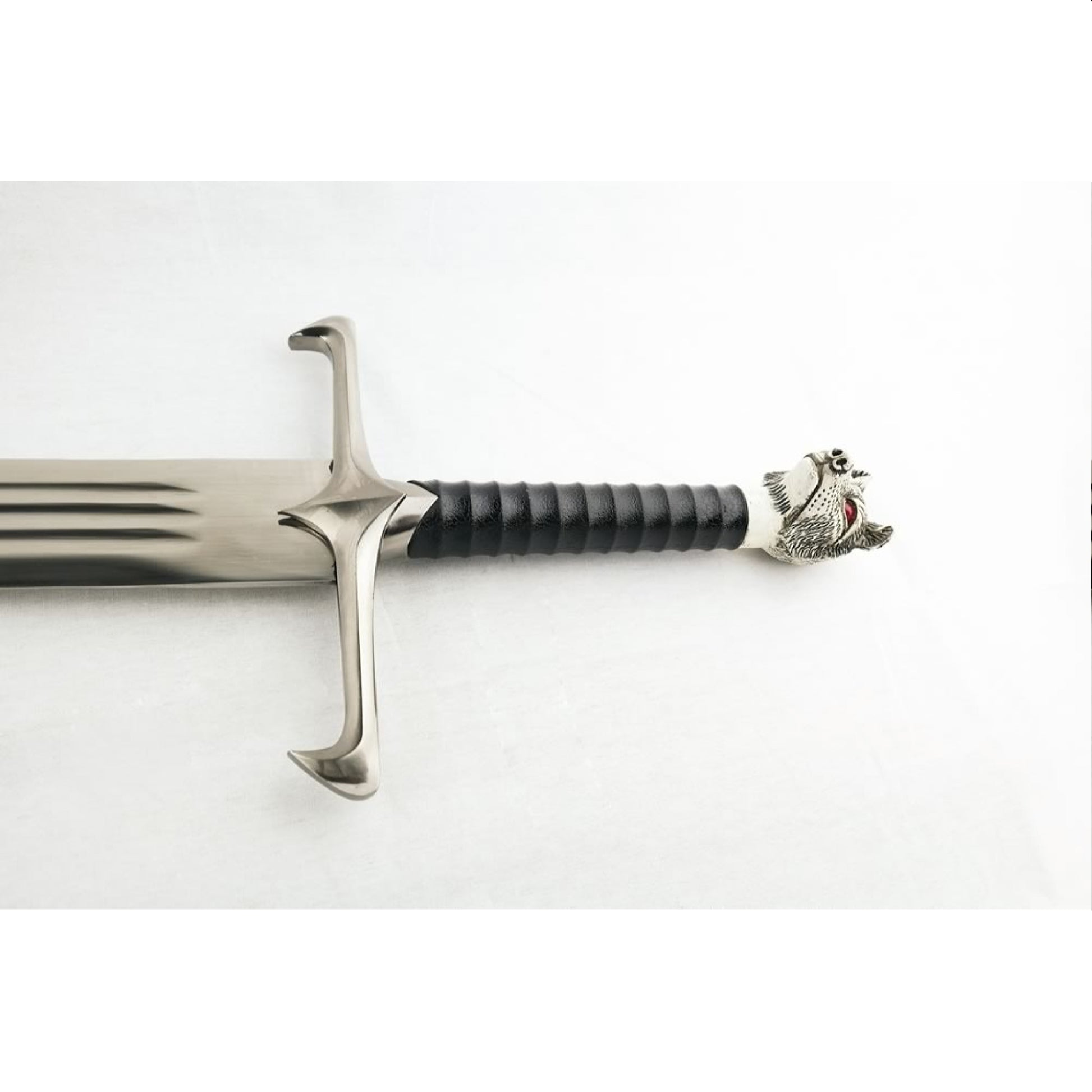 The Bastard's "Direwolf Book Sword" is 108cm with a stainless steel blade 83.5cm long. The handle is wrapped leather with an imitation ivory pommel. The plaque is wooden with the oath of the brotherhood on it. This sword would be ideal for defending the realms of man from the terrors of the north!
