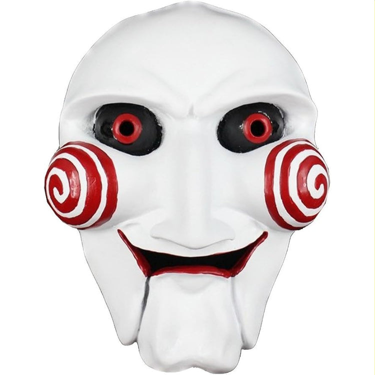 Bring the chilling presence of the Saw franchise to life with the Jigsaw Billy Resin Mask, a striking replica inspired by the infamous Billy the Puppet. Crafted from durable, high-quality resin, this mask captures the character’s eerie details—from the pale, lifelike complexion to the haunting red spiral cheeks and piercing stare.