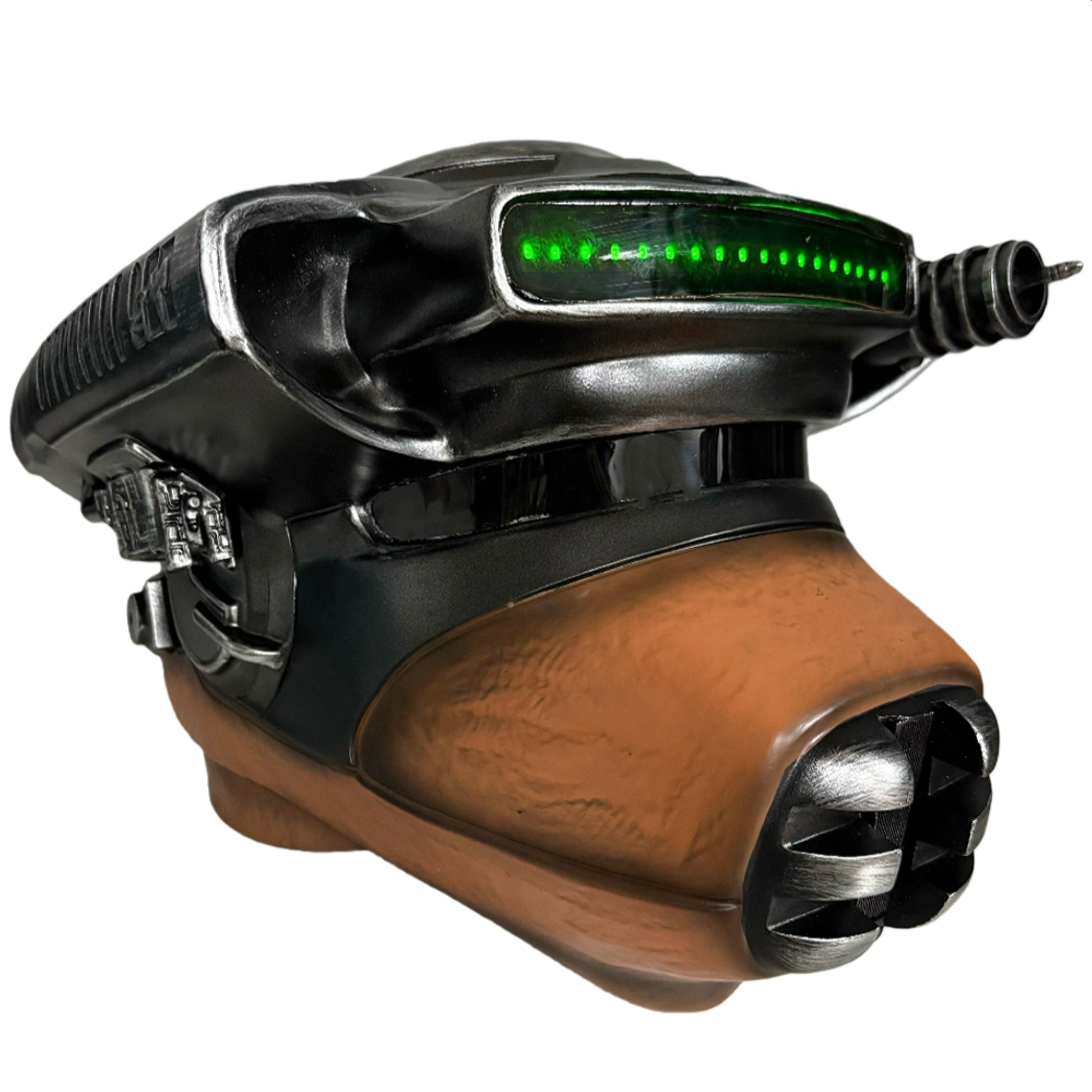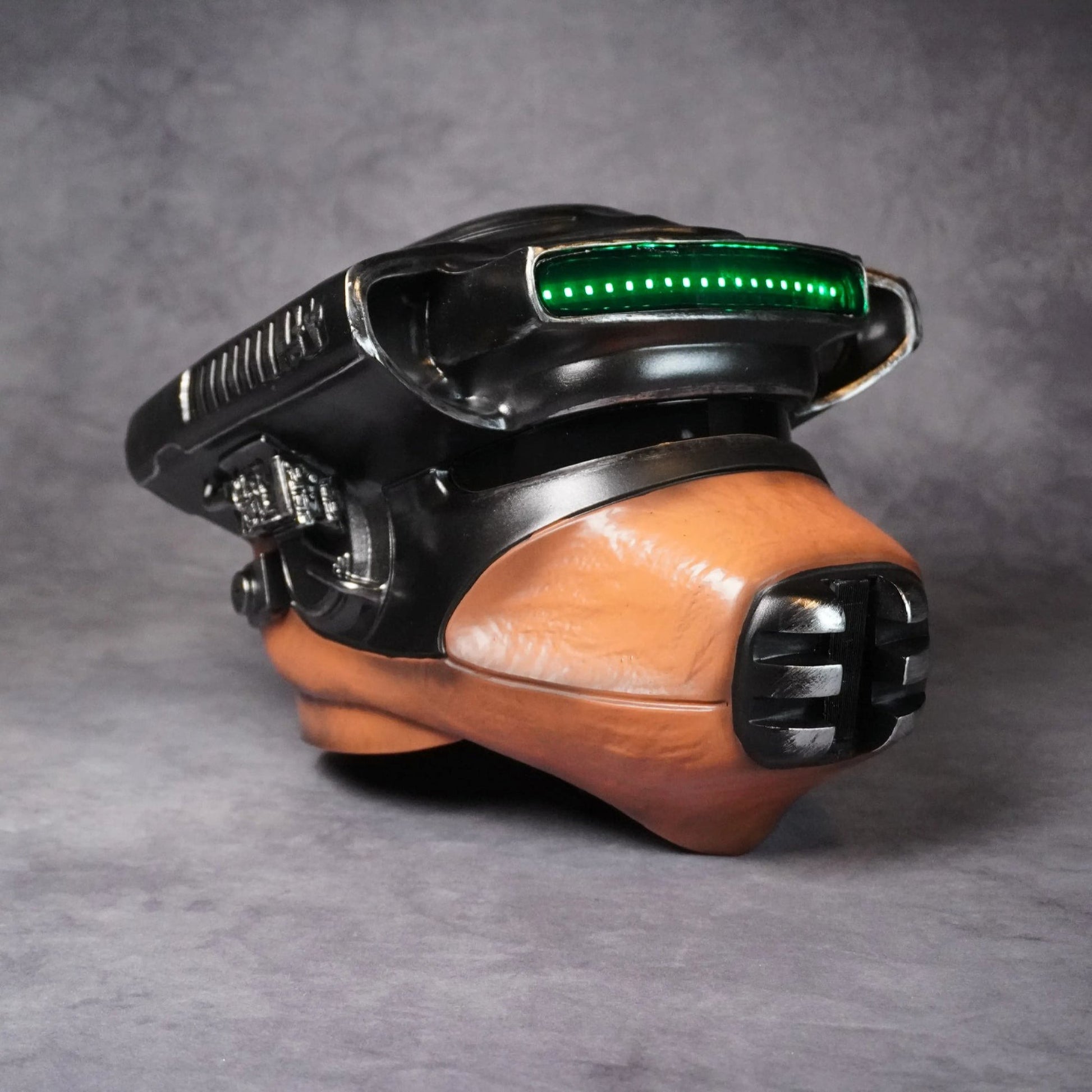 Each helmet is individually painted and weathered by hand, giving it an authentic, lived-in appearance worthy of a galaxy-far-far-away bounty hunter.