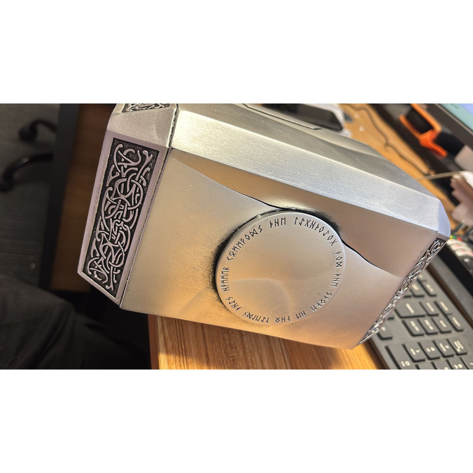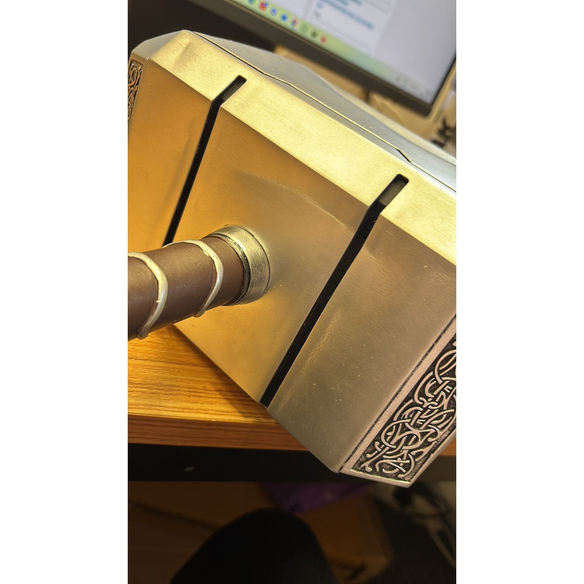 This 1:1 Thor's Mjolnir hammer is great choice for cosplay and as a gift. Made out of high-quality resin and hand painted with attention to detail. This replica also includes a hand painted resin base on which you can sit your Mjolnir Hammer.