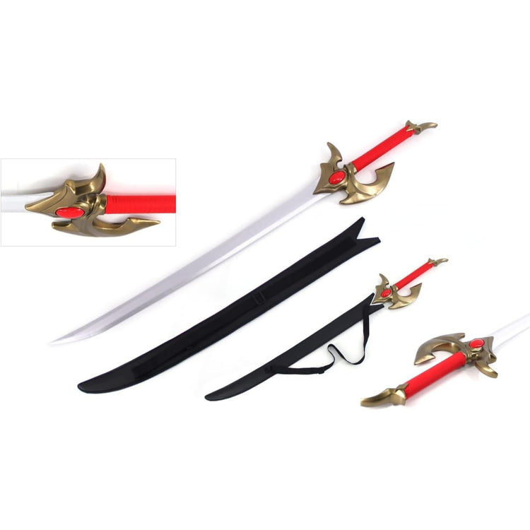With the sheath included, the sword showcases its streamlined, ready-for-action silhouette. The handle features a comfortable wrap-style grip, making it perfect for cosplay, display, or photoshoots. Lightweight yet sturdy, this wooden sword is ideal for fans, collectors, and performers.