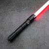 The hilt features a premium black metal finish, giving it an authentic battle look, and like most Sith weapons, it gives it an intimidating presence. Its angular contours and unique emitter make it stand out, while black accents lend it a sleek, powerful feel. The perfectly balanced grip provides a comfortable hold, whether for actual wielding or display.
