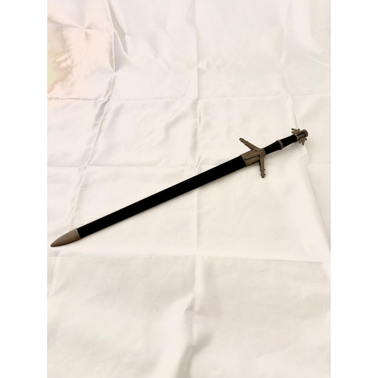 Channel the legendary power of Aerondight with this detailed small metal sword replica inspired by The Witcher. Designed to reflect the iconic weapon wielded by Geralt of Rivia, this piece features a sleek black blade with metallic accents and a finely crafted hilt.