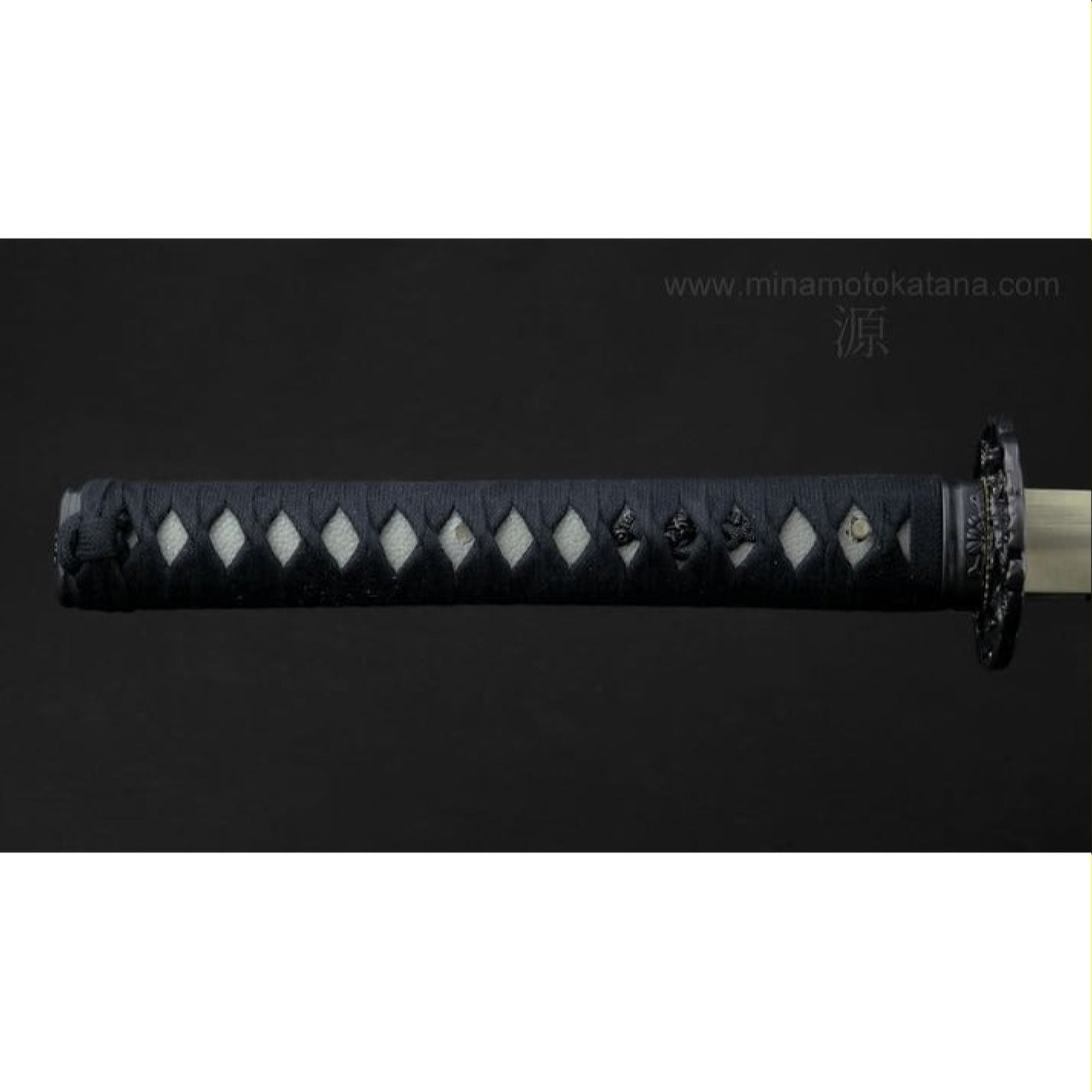 Folding the steel on the blade serves two purposes. Firstly it removes all the impurities from the blade, and secondly it increases the hardness of the steel. Too much folding and the blade is too brittle, too little and it is soft and unable to hold that famed katana cutting edge. Any smith can fold steel but only at Minamoto do the smiths have the experience and teaching to do it to perfection. The hamon on this sword is real. There is no bohi (groove in the blade for weight reduction).